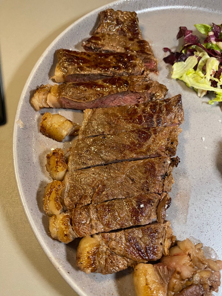Arriva lo striploin di Giovenca Sannita, una ciccia di tutto rispetto, con grasso mirabile esterno di colore giallo e succulenza e toni extra-ordinari.