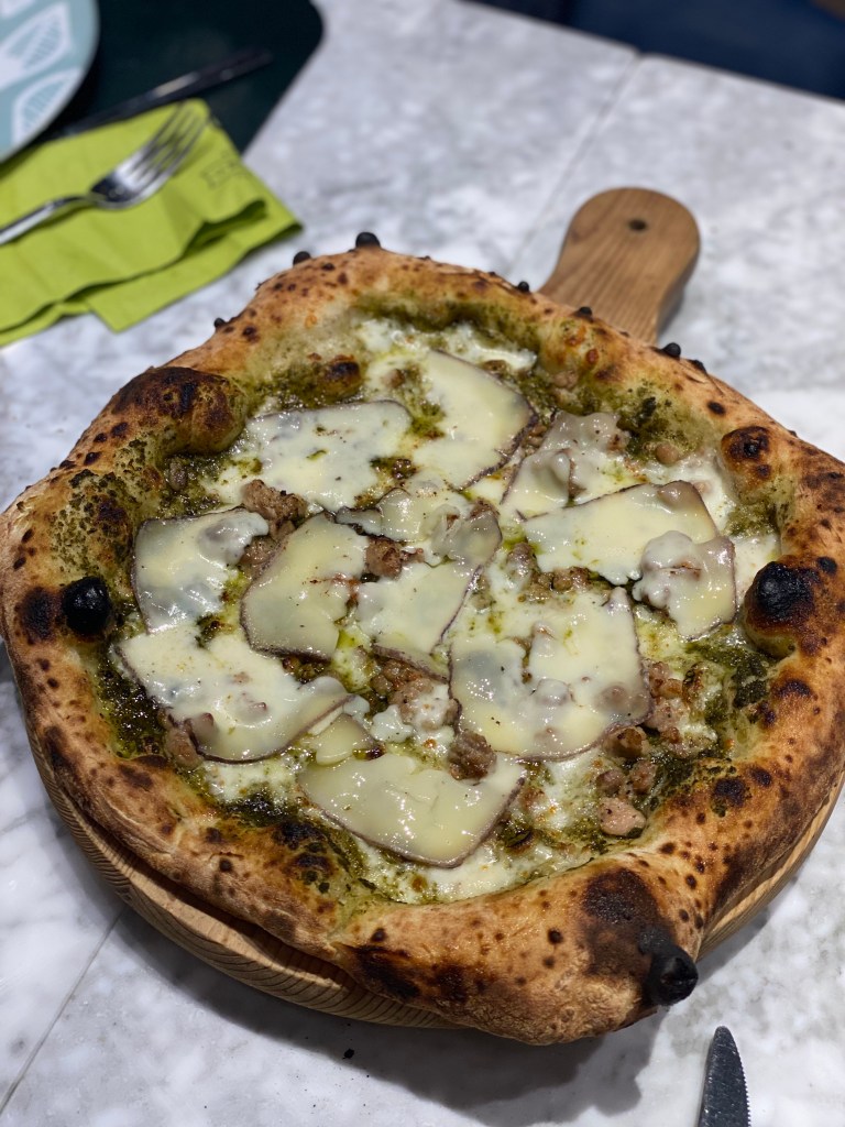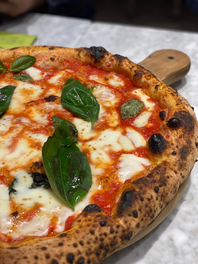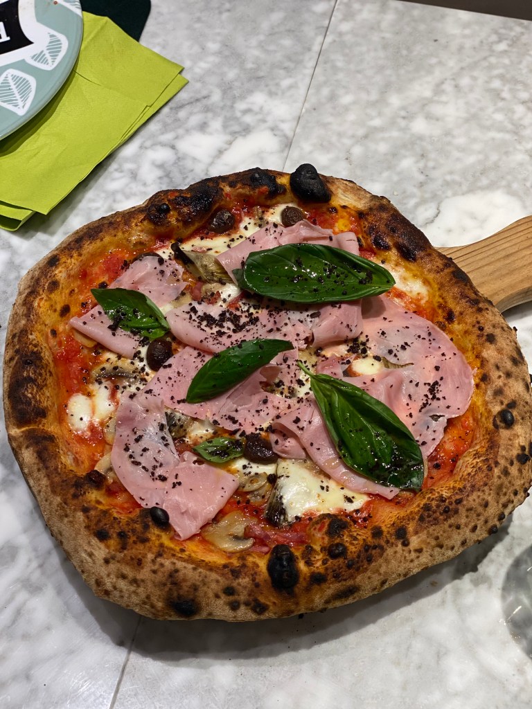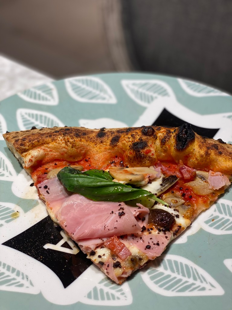 Impasto diretto, blend di farine, forno a legna e un impatto con una tradizione a tratti vanitosa. Si scioglie con la giusta tenacia, profuma, con quella piacevole crosticina sul bordo che suona andando verso il cornicione.