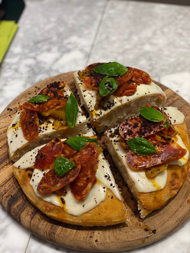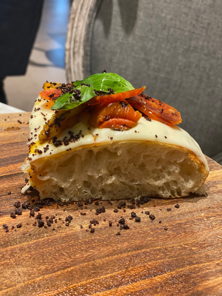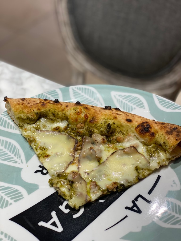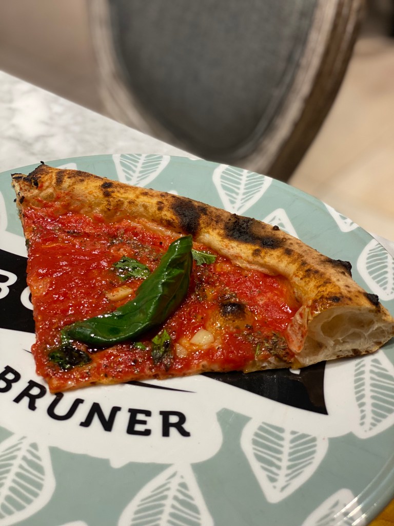 Impasto diretto, blend di farine, forno a legna e un impatto con una tradizione a tratti vanitosa. Si scioglie con la giusta tenacia, profuma, con quella piacevole crosticina sul bordo che suona andando verso il cornicione.