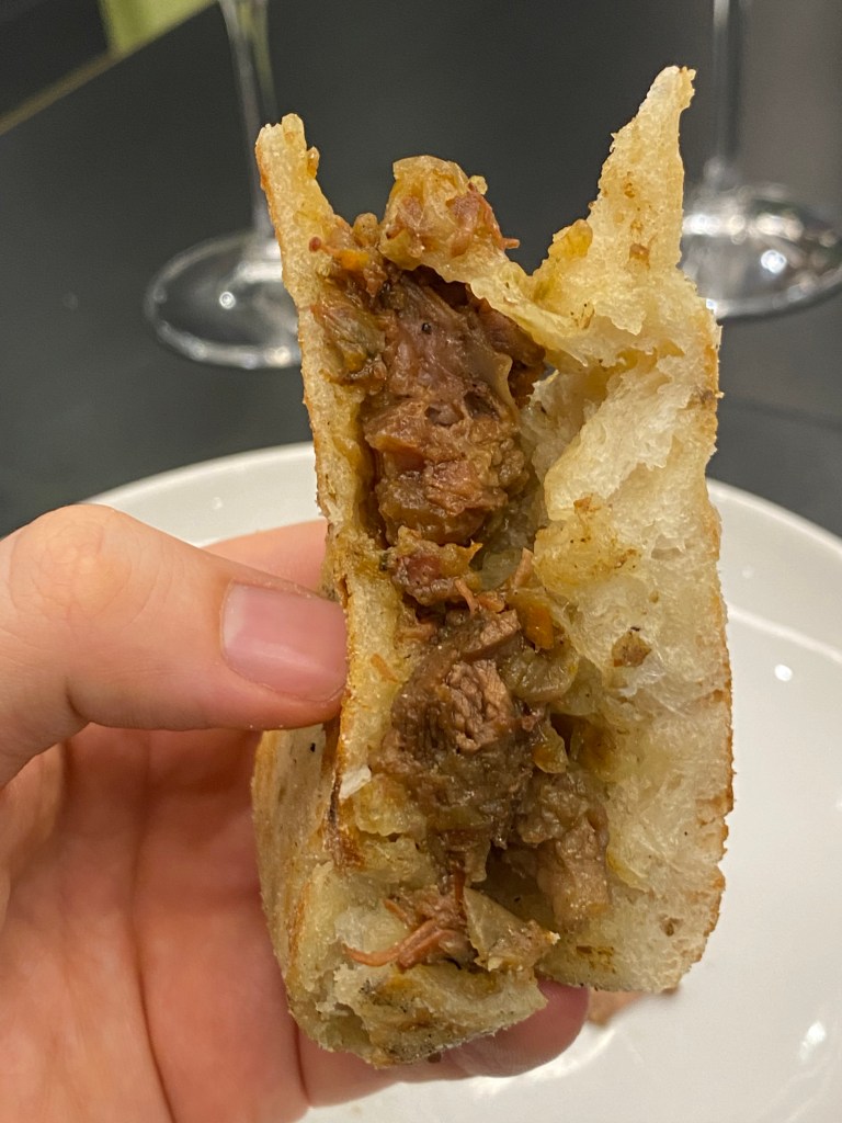 Il Padellino alla Genovese vince per l’intuizione di un impasto al finocchietto. Matrimonio perfetto col ragù di carne e cipolla che si fa farcitura di un sandwich che solletica la tradizione.