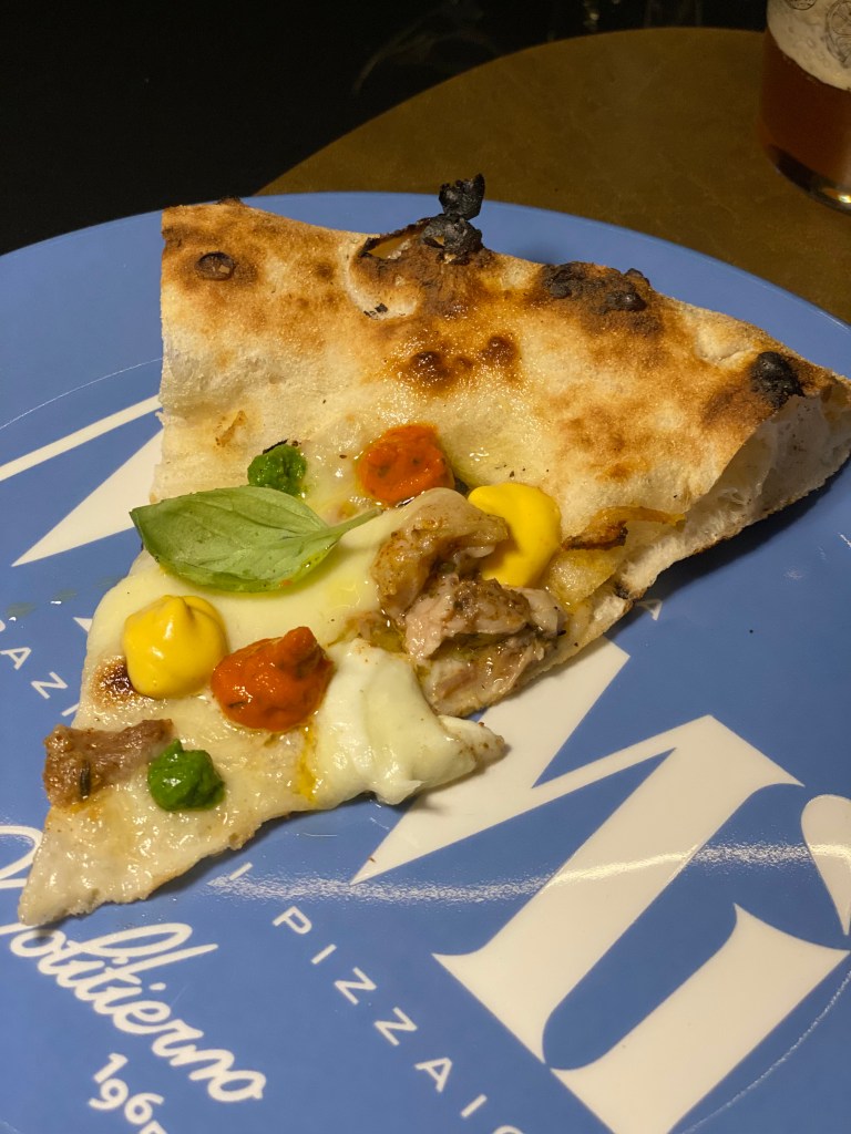 La devozione al pollo sopravvive ed è un incanto. Cotto nel forno delle pizze, lascia il ricordo sia nella versione in purezza o come farcia di un Pacchero fritto. Past & present. Che nessuno lo tocchi dal menu!