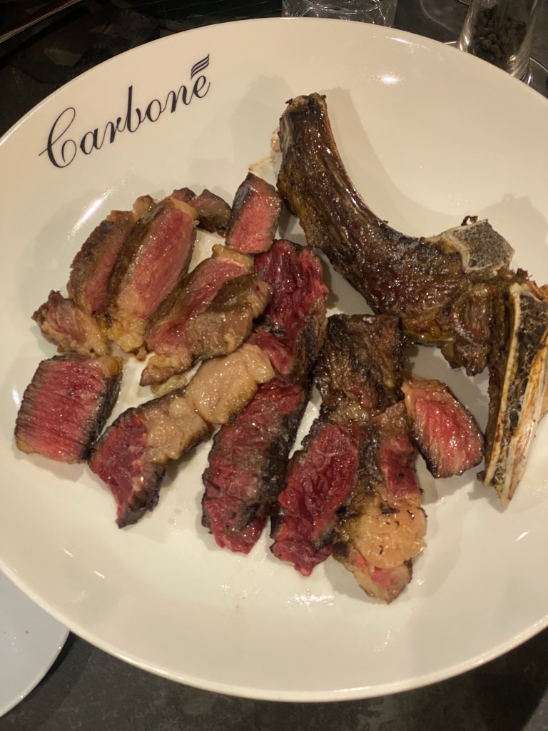 Carbone Meat House si modella sulle personalità di chi lo rende così unico. Macellai da 40 anni. Loro, i fratelli Carbone, alla brace Mario e al banco Pietro. In sala Raffaella D’Ambrosio e Alfredo Falciano, diretti da Gina Memmolo. Mentre in cucina gli chef Luigi Guarna e Michele Langella. Tutti magistralmente in sintonia per gestire i circa 80 coperti in totale. Progetto sostenibile dalle carni spaziali provenienti da allevamenti virtuosi. Manicaretti intriganti e cantina strabordante di vini d’autore.