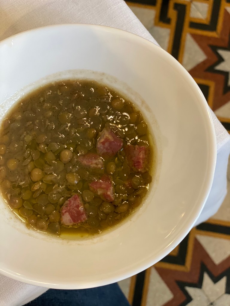 Più ci si addentra, ovunque ci si addentri, più c’è silenzio che fa rumore nel cuore. Benvenuto emozionale, zuppetta di lenticchie e mozzariello.