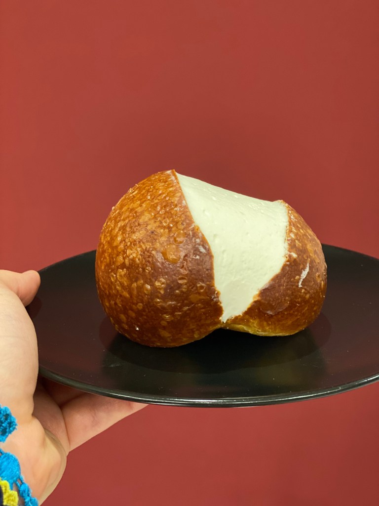 Il talento compiuto lo si assaggia nelle chimere di Danubio all’olio evo e limone di Sorrento con prosciutto cotto affumicato e provolone dolce e nel Maritozzo powered salato al burro di bufala e panna di bufala. L’eleganza della tecnica taciuta.