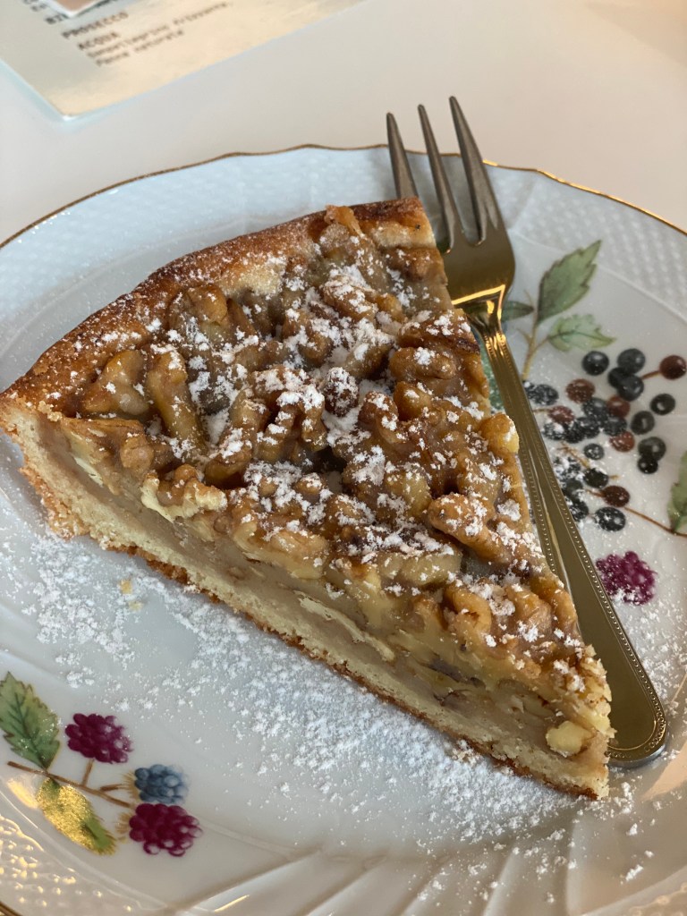 Incantevole la Torta Barozzi al Nocillo con crema al caffè, morbidosa, profonda, lunghissima.