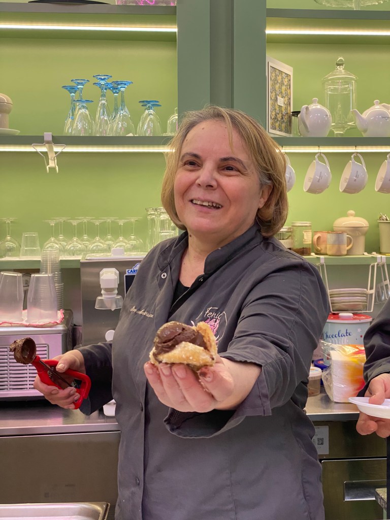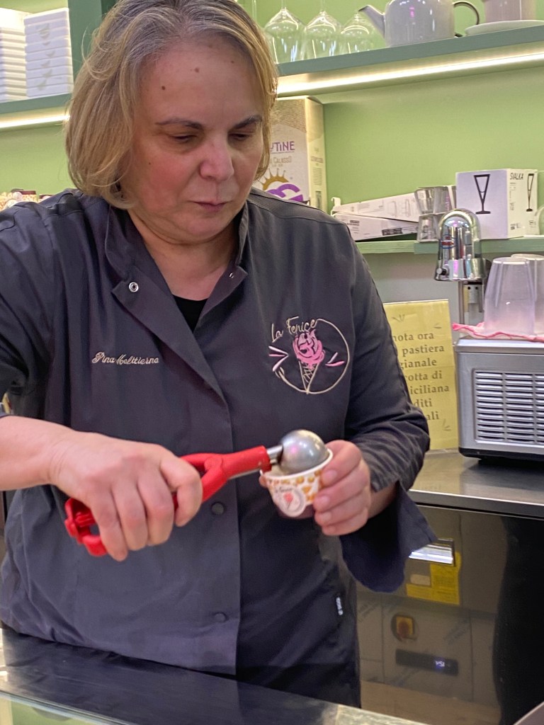 La maestra gelatiera della gelateria La Fenice di Caserta argina la pistacchio-mania dilagante con una lectio degustativa (7,50 € a persona, disponibile solo su prenotazione) sull’oro verde.