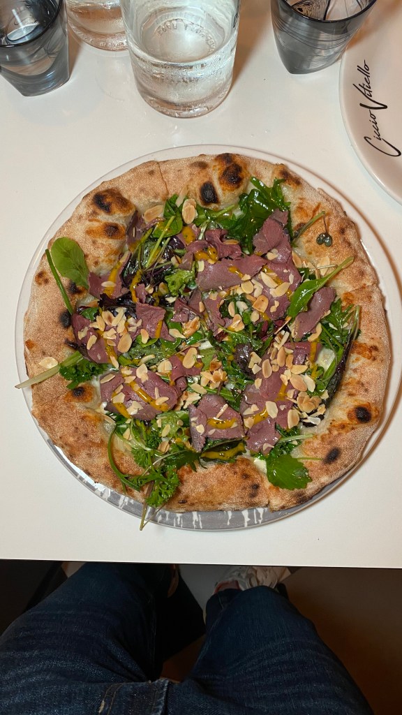 In fondo, “Chi nasce tondo può evolversi in tutte le forme”, come recita la prima pagina del menù scansionato col QR core. Snello, leggero ma impattante con incroci incredibili e schietti, adattando ritmo e regole alla maturità dell’autore. In bella mostra il percorso degustazione Utopia, sei portate “dal nostro orto di San Leucio”. La sezione Con-divimi ha l’avanguardia di raccogliere insieme creazioni troppo audaci da consumare in solitudine (vivaddio!), applausi per il suggerimento della condivisione. Poi la sezione Pizza Tonda Classica (con quindici referenze) dove i grandi classici si mescolano alle signature. Interessantissima sezione Vegan che oltre alle pizze propone anche fritti e dolci.