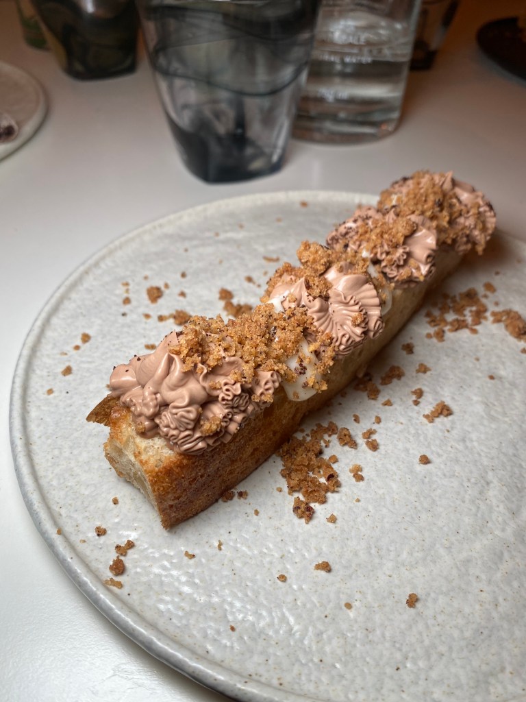 Chiusura dolce amarcord. La base al cacao di Ciccio imparadisa da una vita. La golosità elegante che non conosce il foodporn. Un morso morbido, pulito, con quel crumble al cacao salato che sostiene la scioglievolezza della crema di nocciole di Avella artigianale. Ricordo fedele.