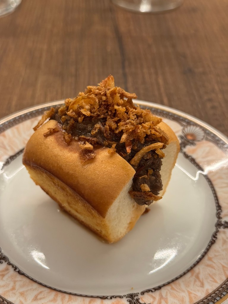 Strutture da Pulled duck. Struttura di bun come un lobster roll. Gel al lime che apparecchia. Kimchi playground pirotecnico piccante, salato, aspro e leggermente umami. Strutturazione della cottura dell’anatra. Succulenza. Crok di cipolle. Inscalfibile manico di candore.