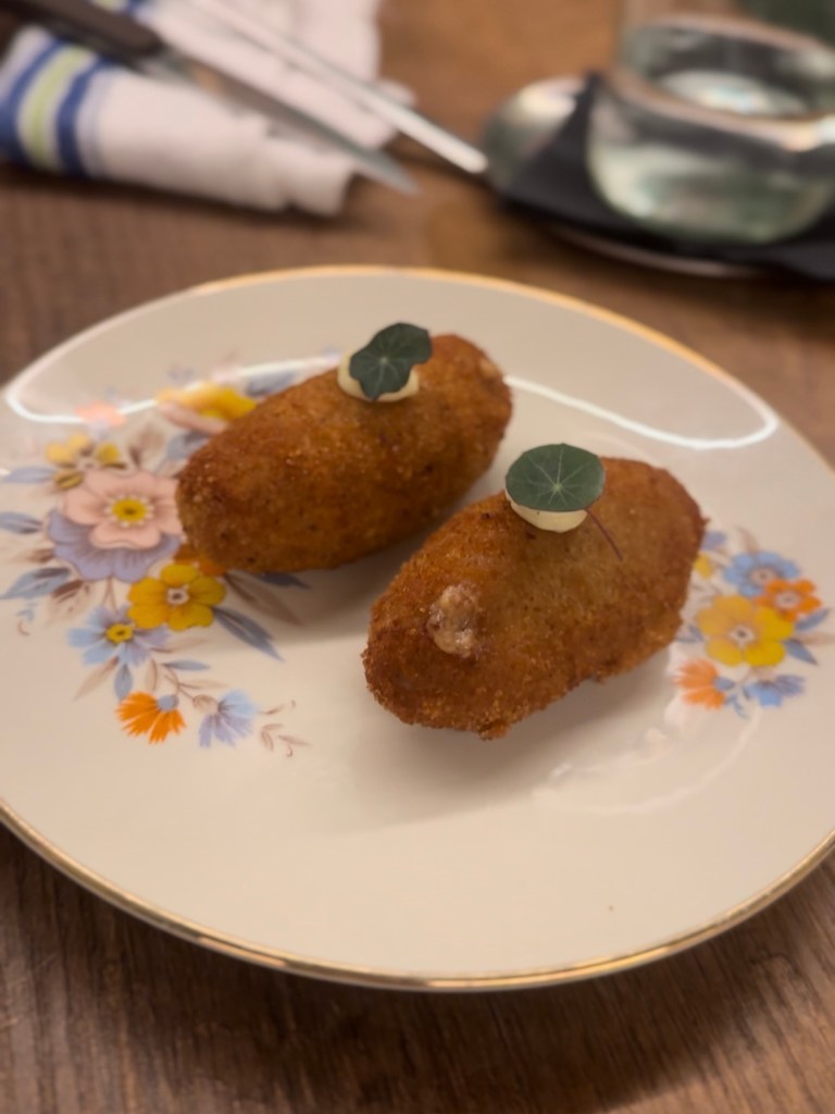 Le Croquetas de jamon piacione, la Focaccia alle patate con topping di cipolle lo sfizio necessario.