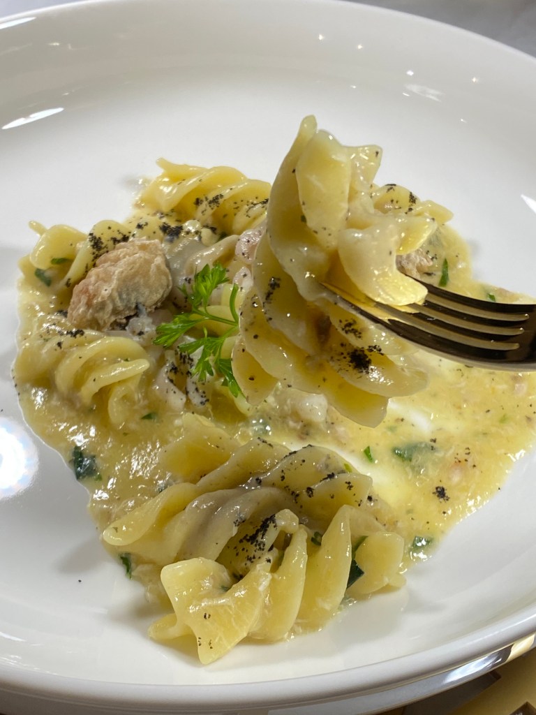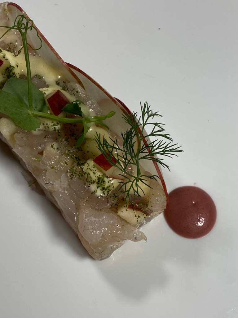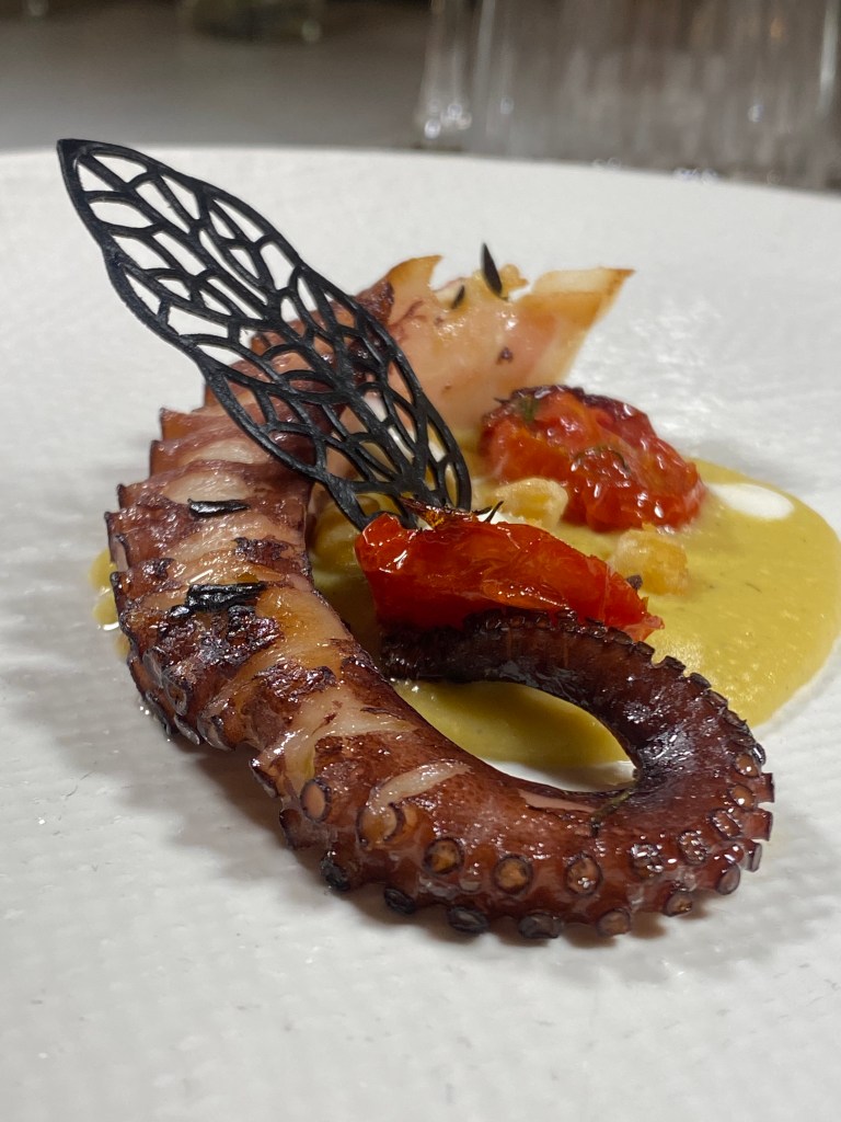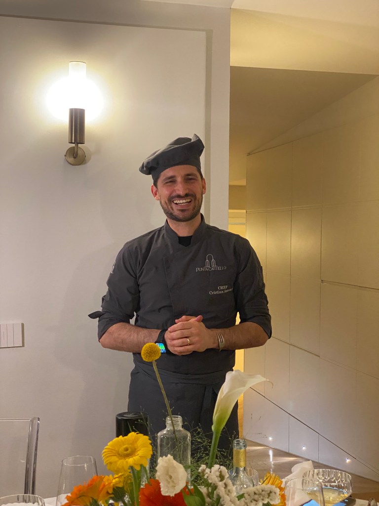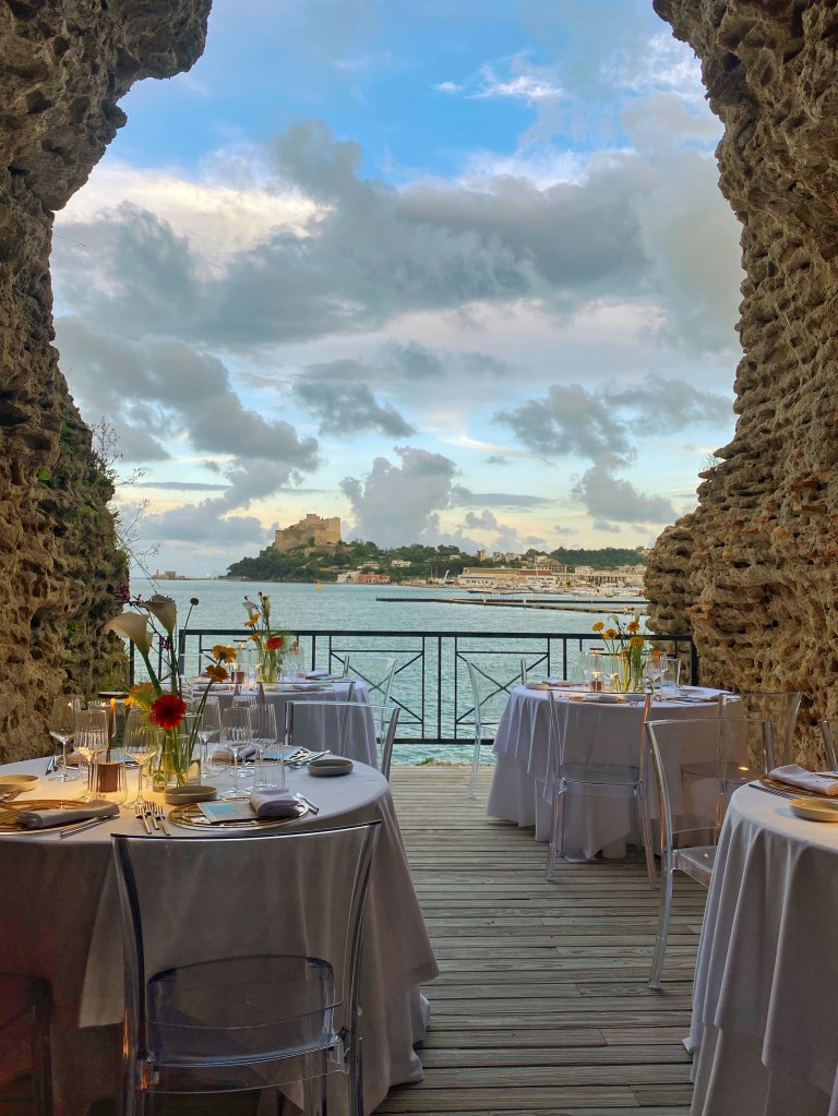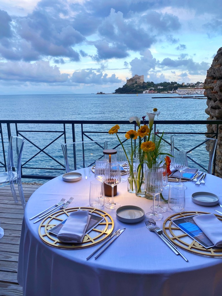 Il menù, curato dagli chef Cristian Ascenzi e Pasquale Schiano, è un tributo ai doni del mare e della terra flegrea: piatti a base di pesce fresco si intrecciano con cicerchia, erbe spontanee, pomodoro cannellino. Ogni cena diversa, capitoli unici che cambiano con il tempo, esaltato dall’abbinamento di vini scelti con cura, in armonia con la storia e la stagione.