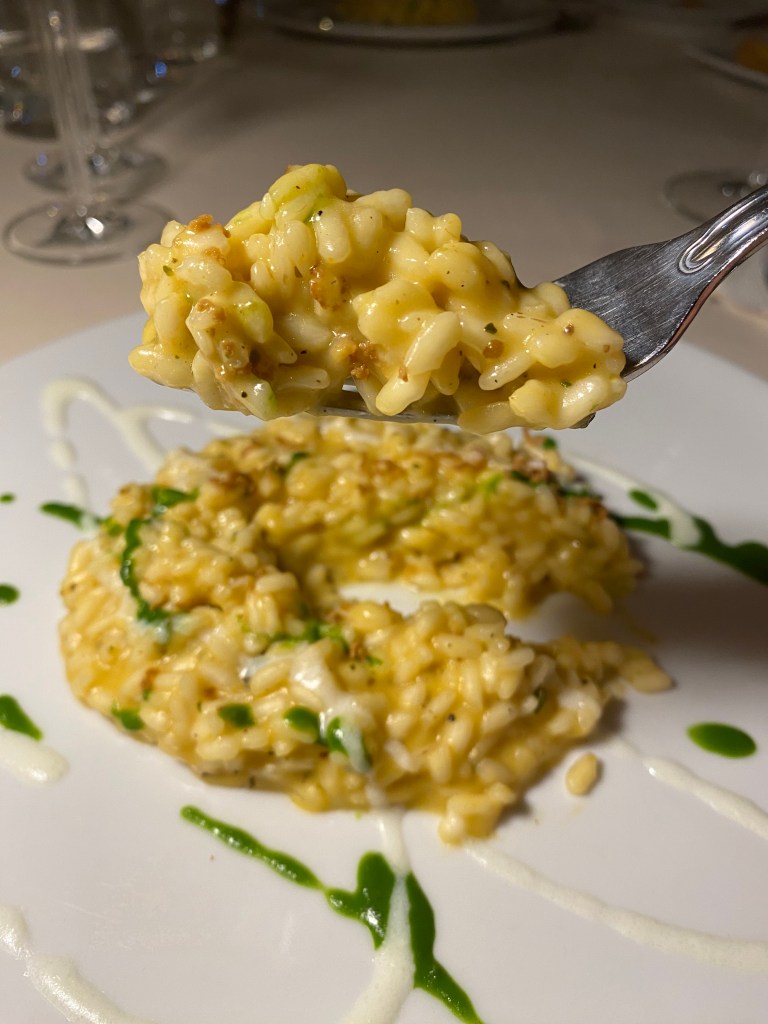 Il Risotto alla Pizzaiola ha l’aromaticità indovinata. Ancora tocco iodato di bottarga di tonno a spingere, pomodoro giallo a spegnere. Alchimia.