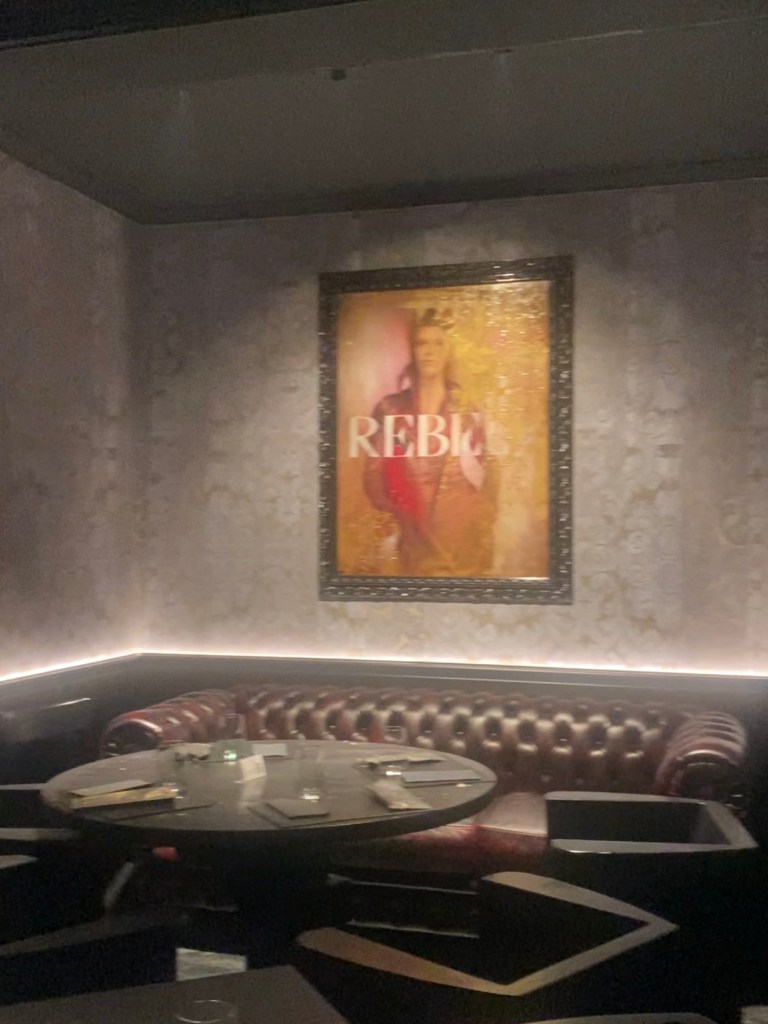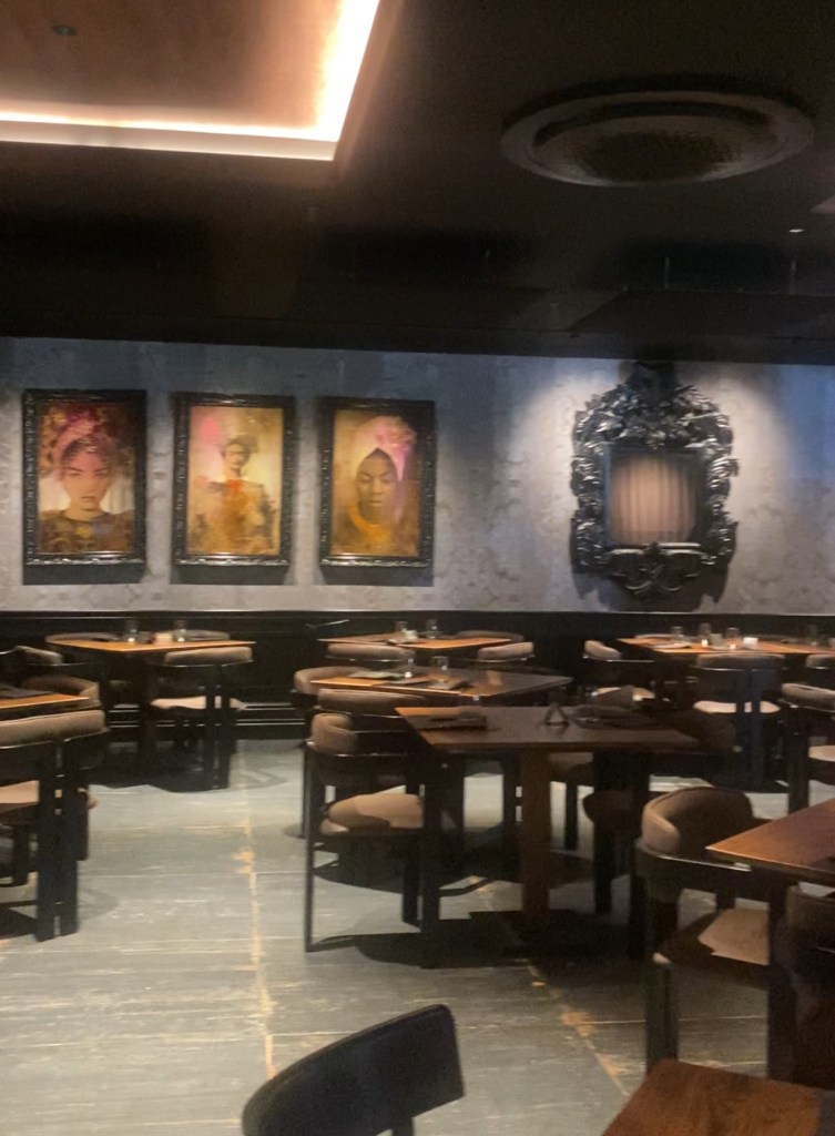 Locale buio, ombre. Il mondo fuori non esiste più, si dissolve. Scompare. Non si sa più se è giorno o notte. Spazio e tempo si annullano, inghiottiti dalla persistenza di un nero vivo, quasi gotico. Dove i quadri alle pareti raccontano, scrivono, riscrivono, ti guardano. Specchi, pareti vintage, cornici maestose. Opere suggestive di Riccardo Raul Papavero accolgono lo sguardo. Una porta scorrevole conduce all’intima saletta di degustazione, uno spazio distinto anche nell’arredo. L’universo Martucci in un piccolo spazio vitale. Cinque tavoli circondati da sedie in cemento firmate 101 Copenhagen. L’iconico divano Chesterfield convive con opere di arte contemporanea: ritratti di David Bowie e omaggi a Marina Abramović. Esperienziale.